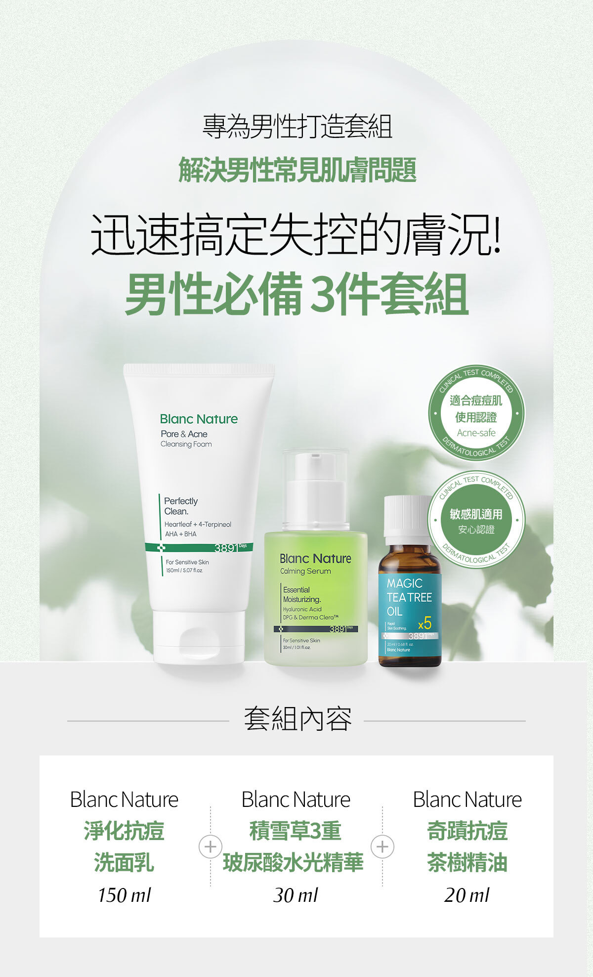 專為男性設計,3 步驟找回乾淨肌膚: