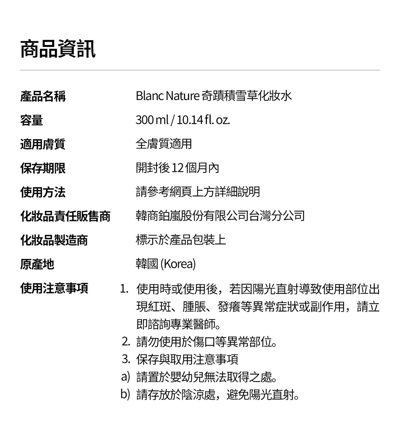 奇蹟積雪草化妝水 300mL